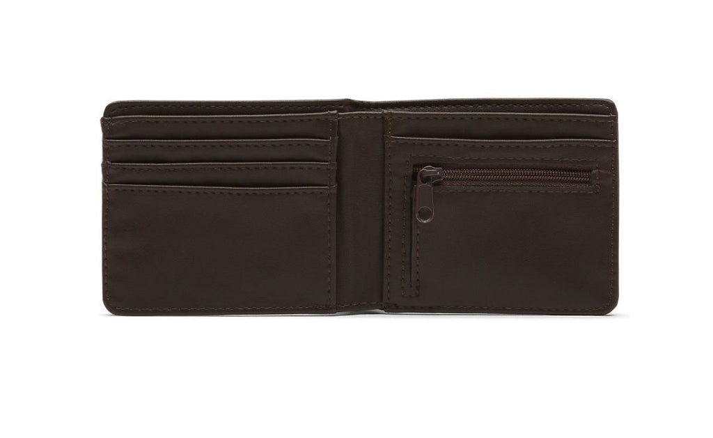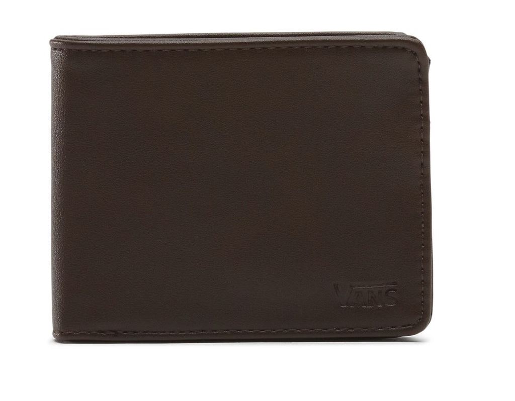 Le portefeuille à deux volets Drop V est un portefeuille à deux volets 100 % polyester avec revêtement en polyuréthane et logo « Vans Off The Wall » gravé en relief.