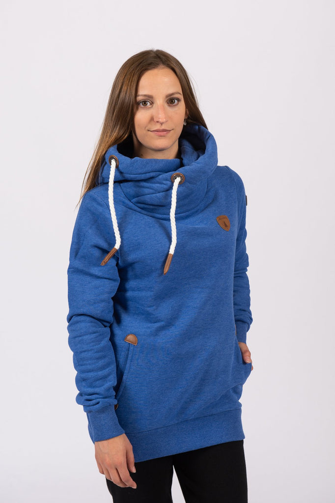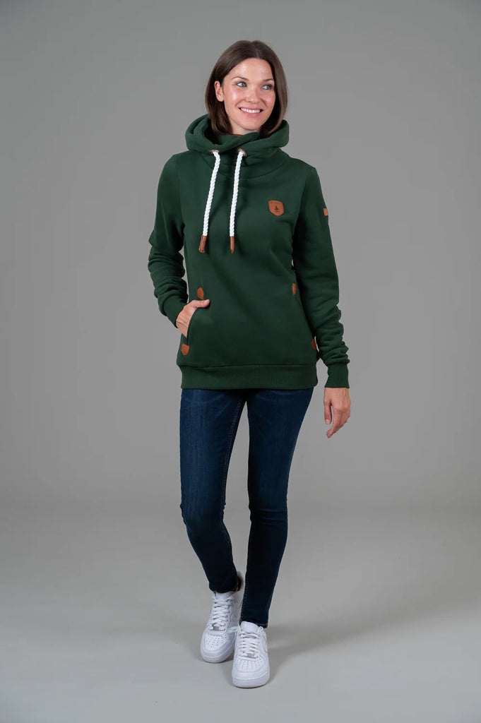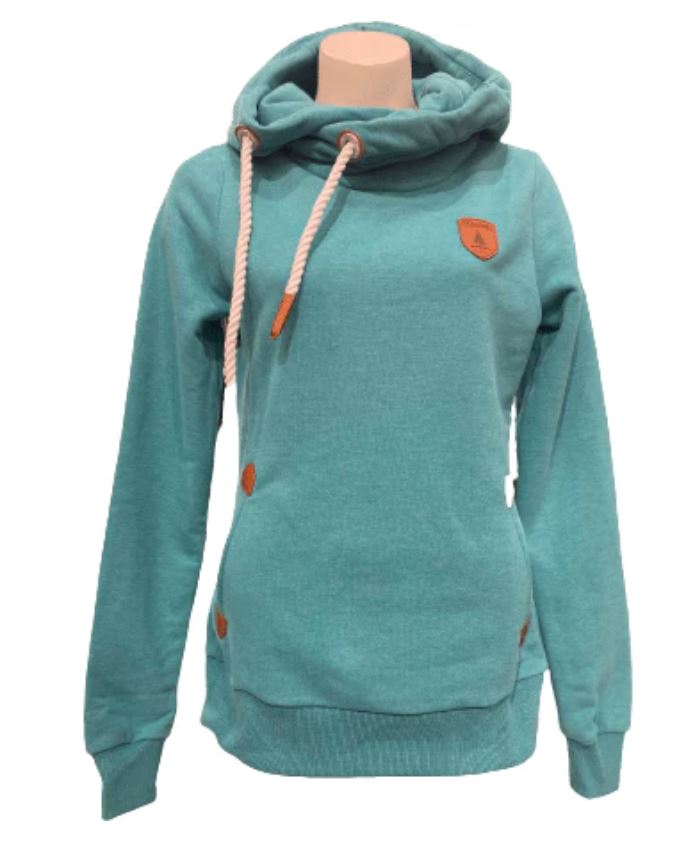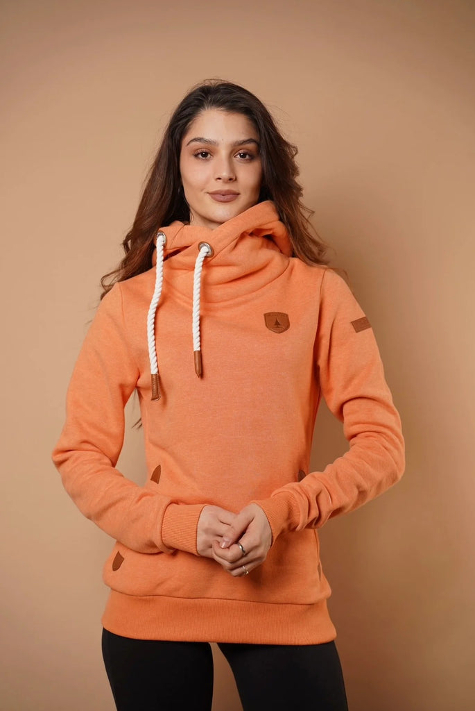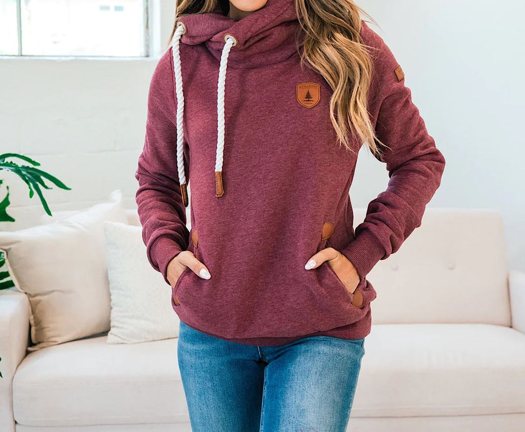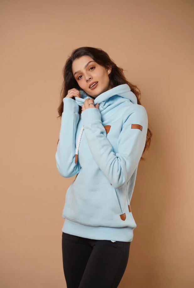 Capuche à col bénitier avec cordons de serrage réglables et capuchons en cuir végétalien