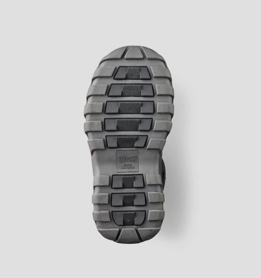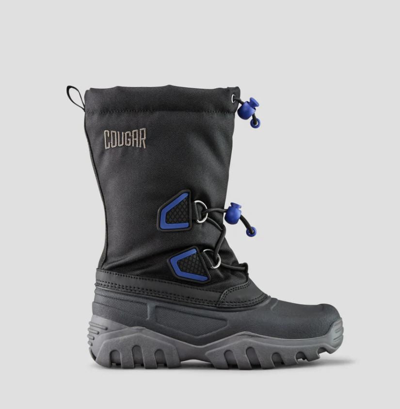 Easy pull-on nylon winter boot with stretch front lace/toggle closure. Adjustable cuff with lace toggle. Thermoplastic rubber shell outsole.