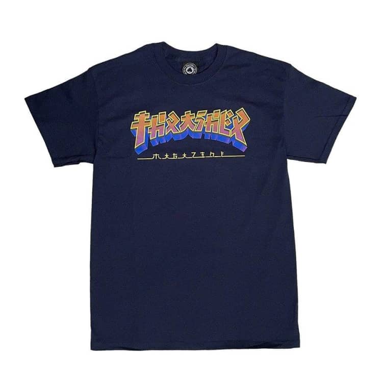 T-shirt unisexe 100 % coton, épais et imprimé du magazine Thrasher, avec graphisme sérigraphié sur le devant et étiquette Thrasher.