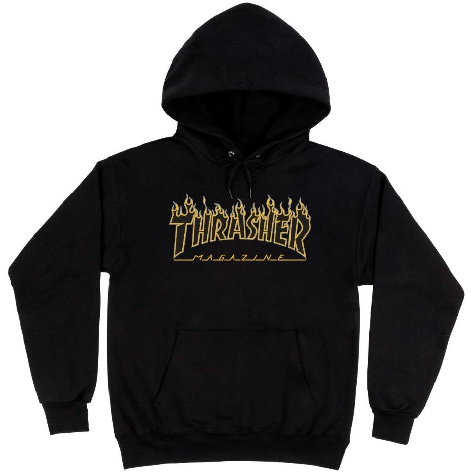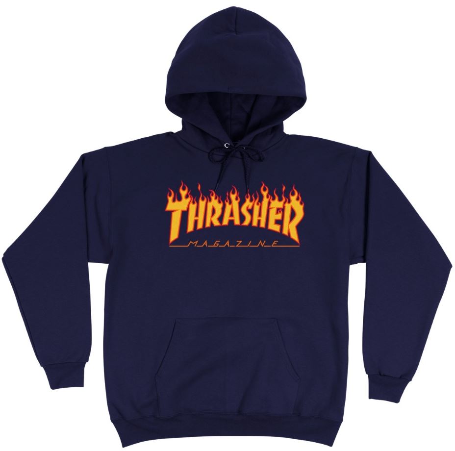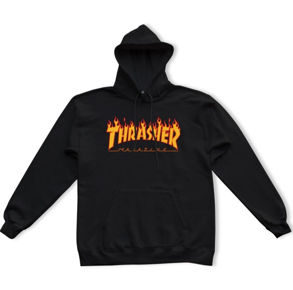 Sweat-shirt à capuche épais, 90 % coton, 10 % polyester. Présente le logo flamme classique de Thrasher.