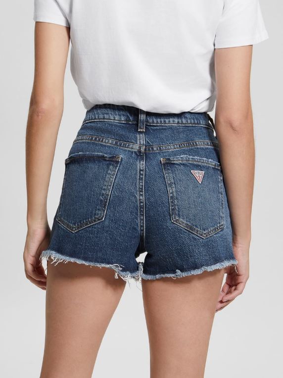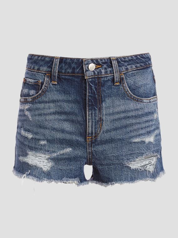 Ramenez les bons moments avec ce short en jean confectionné dans une silhouette d'inspiration rétro avec une taille très haute et des ourlets effilochés.