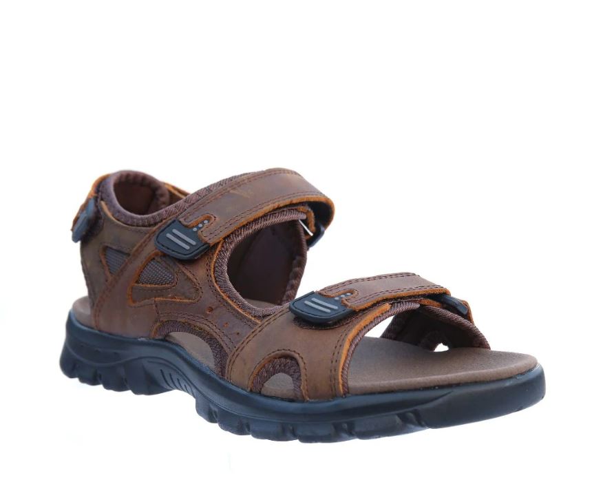 Men's casual summer sandal with three adjustable straps for a tailored fit. Crafted using soft leathers and textile linings. Sitting atop a hardwearing and flexible PU sole unit for all day comfort and support.