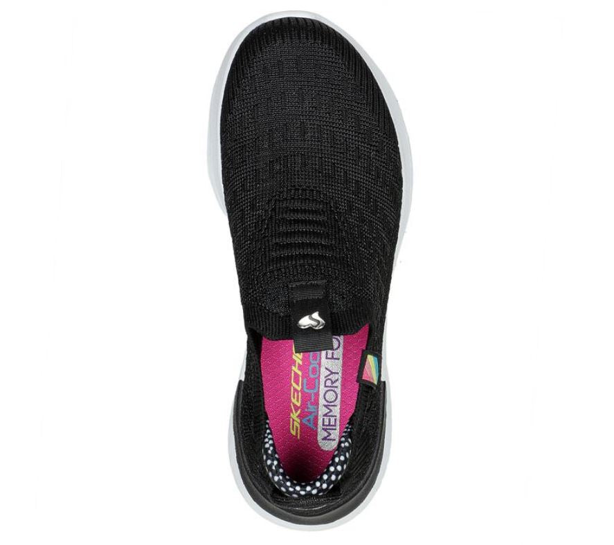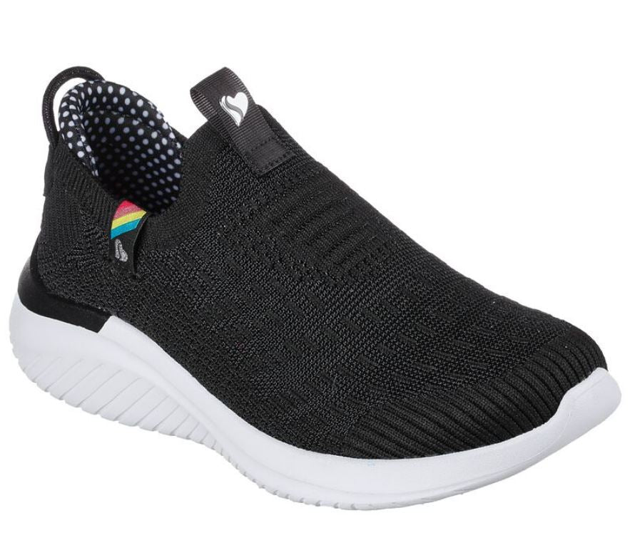 Step out with easy-wearing comfort in Skechers Ultra Flex 3.0 - Happy Brights. This laceless Stretch Fit® style features a Skech-Knit upper with a cushioned Skechers Air-Cooled Memory Foam® insole.