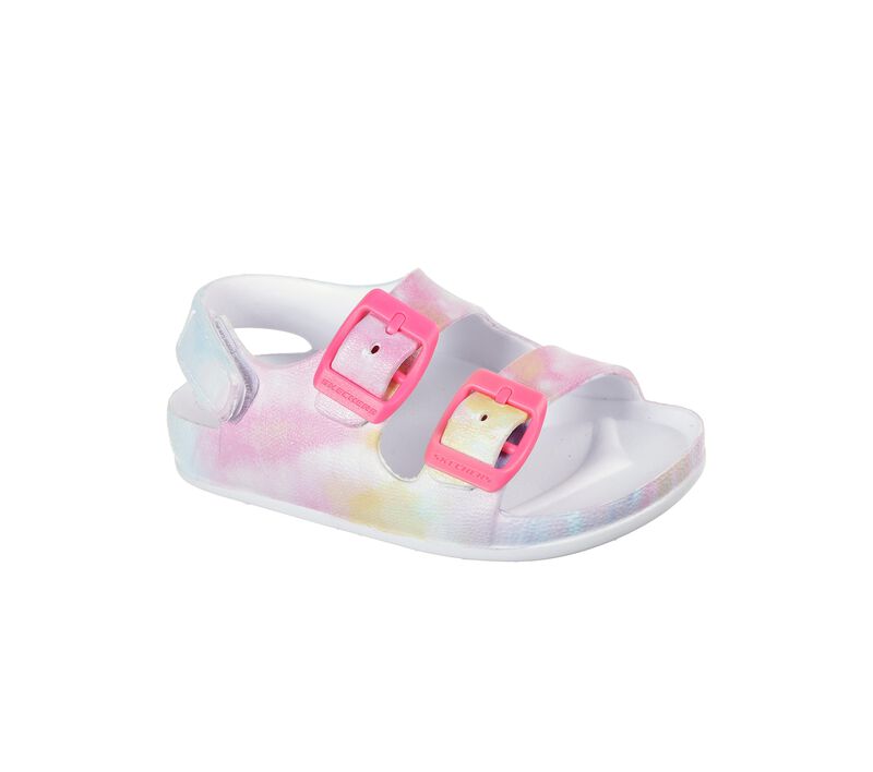 Spend the day in fun colorful comfort with Skechers Foamies®: Lil Cali Blast - Lil Summer Dreaming. This dual buckle strap slide sandal features a sculpted flexible EVA foam upper with allover tie-dye print and cushioned contoured footbed