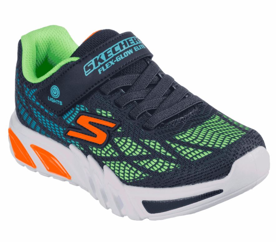 Gear up with light-up style and comfort wearing Skechers Flex-Glow Elite - Vorlo. This slip-on features a synthetic ombre upper with a stretch-laced front and cushioned insole.