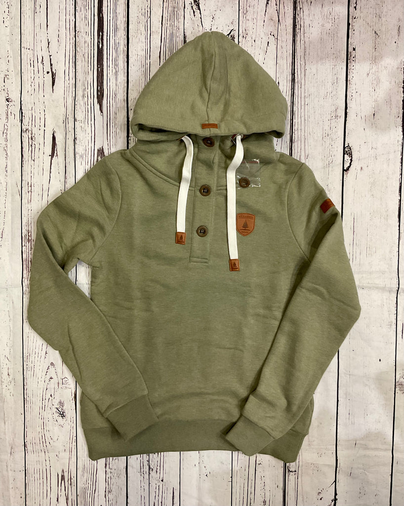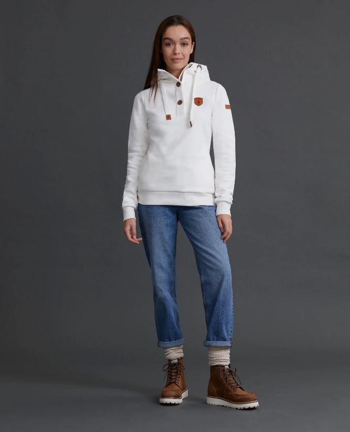 Women's Half Button Pullover Terry Hoodie with Kangaroo Pocket in Ivory