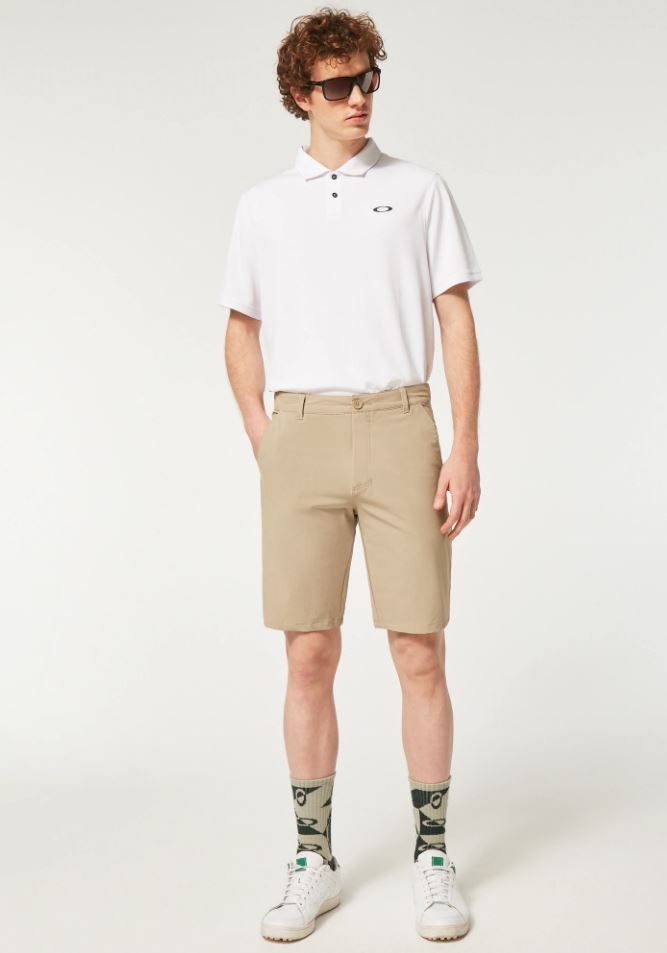 Water resistant, 4-way stretch fabric for extended range of motion and modern design combine to make the Take Pro Short 3.0 a top choice for inspired shot-making on any golf outing. The engineered waistband with interior silicone tape delivers all-day comfort and two side pockets and two rear pockets secure your essentials. A raised Oakley logo showcases your sense of style in this short that gives you an edge both on and off the course.